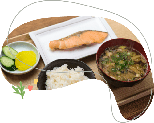 調理員を専属で配置し、安心しておいしい食事を楽しめるよう栄養のバランスを考えてお食事を提供しております。